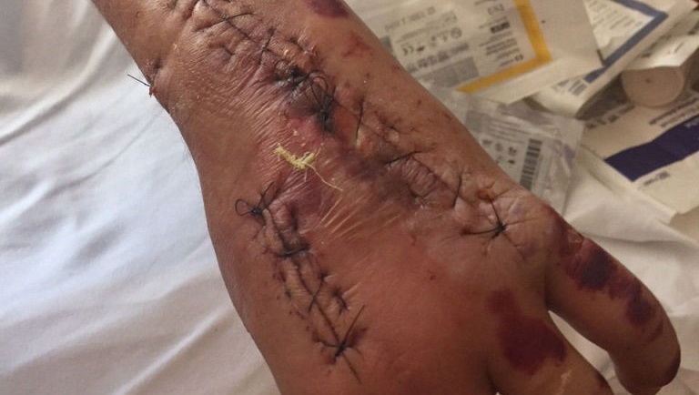 Doctors told Atkins’ wife his condition was limb- and life-threatening: necrotizing fasciitisis is fatal in more than 25 percent of cases. Atkins was fortunate that his training as a first responder tipped him off to the symptoms and that he got to the hospital quickly. He’s back home now, hand completely intact, and is expected to make a full recovery.